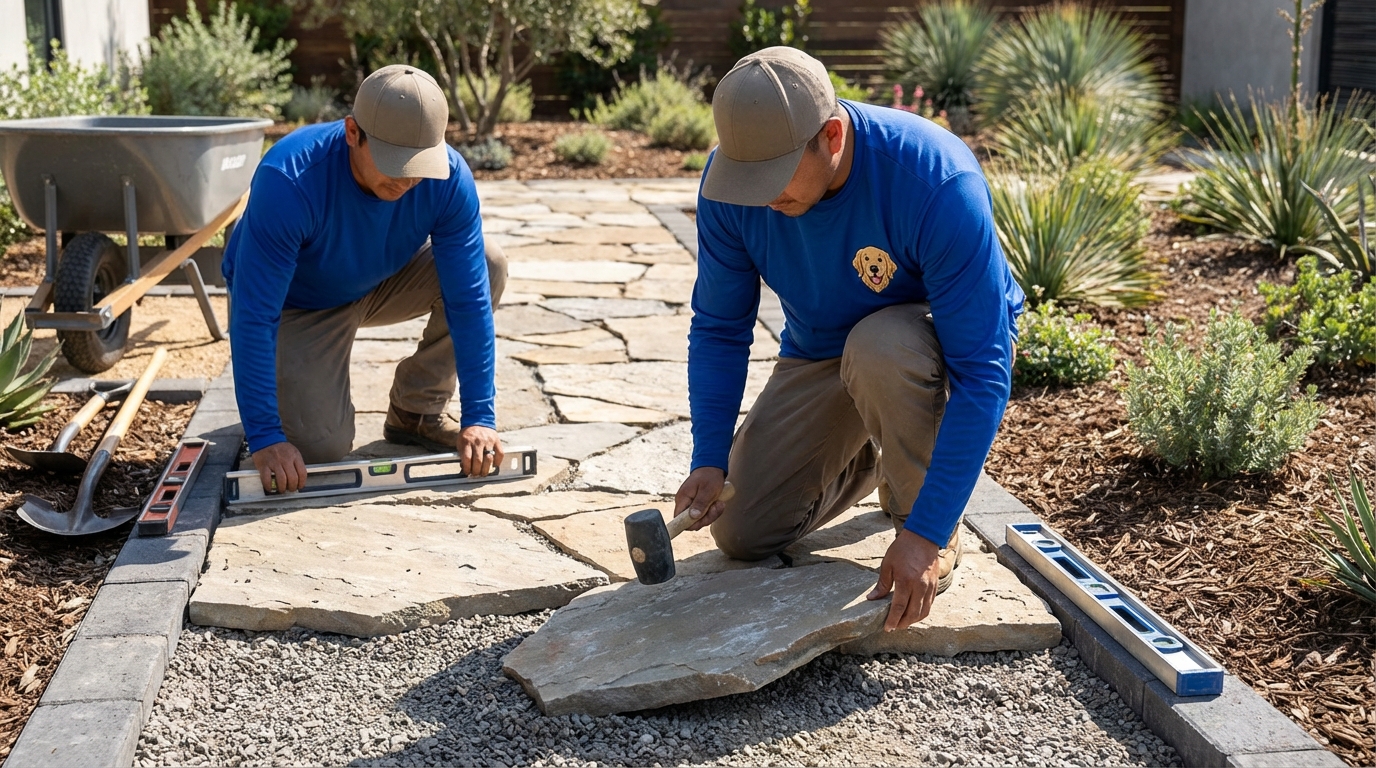 A flagstone walkway is a staple of the Texas Hill Country aesthetic. However, loose edges can often lead to shifting stones, especially with the ground movement we experience here in San Antonio. Adding a paver edging (often called a soldier course) frames the natural stone, providing structural stability and a clean, modern finish.