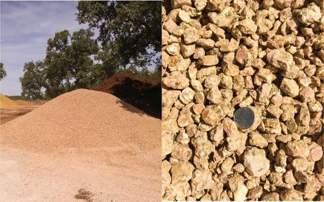 A rough edged crushed rock from local granite quarries. Light pink in color. Comes in 3/4″ size.